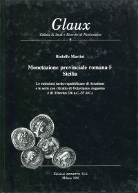 Martini, Rodolfo (Hrsg.): Monetazione provinciale romana.I. Sicilia. Le emissioni tardo-repubblicane di Atratinus e le serie con ritratto di Octavianus Augustus e di Tiberius (36 a.C. – 37 d.C.). Milano: Ennere 1991. 8°. 181 S., zahlreiche Abbildungen und Tabellen, Bibliographie, lam. Pappband (Einband leicht berieben; Ecken leicht bestossen; sonst gut erhalten) (=Glaux, 5)