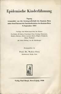 Frey, Walter (Hrsg.): Epidemische Kinderlähmung. Vorträge und Diskussionsvoten. Tagung 1937. Bern/Leipzig: Haupt 1938. Gr.-8°. 131 S., broschiert (leicht lichtrandig; wenig angestaubt; gut erhalten)