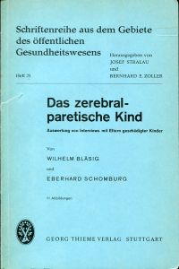 Bläsig, Wilhelm/Schomburg, Eberhard: Das zerebral-paretische Kind. Auswertung von Interviews mit Eltern geschädigter Kinder. Stuttgart: Georg Thieme 1968. Gr.-8°. VIII, 103 S., 11 Abbildungen, zahlreiche Tabellen, Register, broschiert (Einband mit leichten Gebrauchsspuren; sonst gut erhalten) (=Schriftenreihe aus dem Gebiete des öffentlichen Gesundheitswesens; 25).
