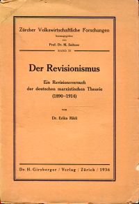 Rikli, Erika: Der Revisionismus. Ein Revisionsversuch der deutschen marxistischen Theorie, 1890-1914. Zürich: H. Girsberger 1936. Gr.-8°. XVI, 128 S. broschiert (angebräunt; Einband leichte Randläsuren; Seiten unbeschnitten) (=Zürcher volkswirtschaftliche Forschungen, Bd. 25)