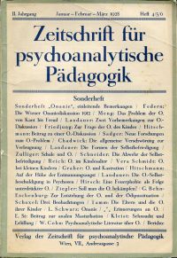 Onanie. Sonderheft der Zeitschrift für psychoanalytische Pädagogik. Wien: Verlag der Zeitschrif für psychoanalytische Pädagogik 1929. 8°. S. 105-199, broschiert (Schnitt leicht stockfleckig; leicht bestossen; altersgemäss gut erhalten) (= Zeitschrift für psychoanalytische Pädagogik; II. Jahrgang, Januar-Februar-März 1928; H. 4/5/6)
