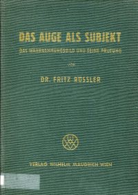 Rössler, Fritz: Das Auge als Subjekt. Das Wahrnehmungsbild und seine Prüfung. Wien: Wilhelm Maudrich 1947. Gr.-8°. 190 S. 122 zum Teil mehrfarbige Abbildungen, Leinen Bibliotheksexemplar; Bibliotheksvermerk an Kapital unten; Innenscharniere teilweise eingerissen; sonst altersgemäss gut erhalten)