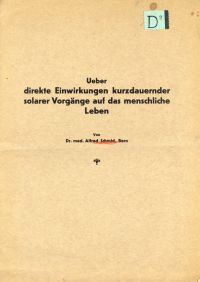 ![]() Schmid, Ueber direkte Einwirkungen kurzdauernder solarer Vorgänge auf das mensch (Umschlag) |