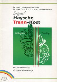 Walb, Ludwig: Die Haysche Trenn-Kost. Nach Dr. Hay und Dr. Walb. Mit vielen erprobten Rezepten und Speisezetteln von Ilse Walb. 43. überarbeitete Auflage. Heidelberg: Haug 1986. Gr.-8°. 135 S., 6 Abbildungen, 1 Klapptafel, broschiert (gut erhalten) Mit Anhang für Diabetiker.