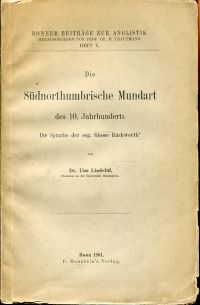 Lindelöf, Uno: Die südnorthumbrische Mundart des 10. Jahrhunderts. Die Sprache der sog. Glosse Rushworth. Bonn: P. Hanstein 1901. Gr.-8°. VIII, 152 S., broschiert (Einband etwas abgegriffen, Kanten und Rücken wenig lädiert, leicht gebräunt; sonst gut erhalten) (=Bonner Beiträge zur Anglistik, Heft 10).