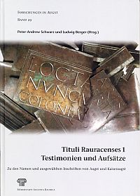 Schwarz, Peter-Andrew/Berger, Ludwig (Hrsg.): Tituli Rauracenses 1. Testimonien und Aufsätze zu den Namen und ausgewählten Inschriften von Augst und Kaiseraugst. Augst: Römerstadt Augusta Raurica 2000. 4°. 180 S., zahlreiche sw-Abbildungen und Illustrationen, Pappband (gut erhalten) (=Forschungen in Augst, 29)