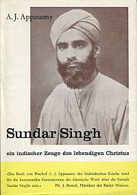 Appasamy, Ayadurai Jesudasan: Sundar Singh. Ein indischer Zeuge des lebendigen Christus. [1. – 3. Tsd.]. Basel: F. Reinhardt 1960. 8°. 309 S., 1 Titelbild, Leinen (Besitzervermerk auf Vorsatz; Schutzumschlag mit leichten Gebrauchsspuren; sonst gut erhalten)