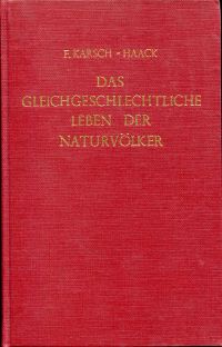 Karsch, Ferdinand: Das gleichgeschlechtliche Leben der Naturvölker. [New York:] [Arno Press] [1975.] 8°. XVI, 668 S., Leinen. (Schnitt befleckt; Ecken leicht bestossen; sonst gut erhalten) (=Forschungen über gleichgeschlechtliche Liebe, Reihe 1; Bd. 1). Unbezeichneter Nachdruck der Ausgabe München 1911 bei Reinhardt.