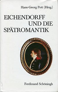 Pott, Hans-Georg (Hrsg.): Eichendorff und die Spätromantik. Paderborn: Schöningh 1985. 8°. 205 S., Abbildungen, Register, Leinen (Besitzervermerk auf Vorsatz; Ex Libris auf Innendeckel; gut erhalten) (=Schriften des Eichendorff-Instituts an der Universität Düsseldorf) Die Beiträge des Bandes reissen Eichendorff aus seiner behaglichen romantischen Rezeption und entdecken einen höchst wiedersprüchlichen Autor, der mit sich selbst und mit den Strömungen seiner Zeit im Zwiespalt ist.