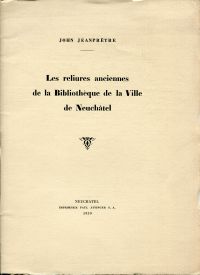 Jeanprêtre, John: Les Reliures anciennes de la Bibliothèque de la Ville de Neuchâtel. Neuchâtel: Paul Attinger 1939. Gr.-8°. 11 S., 2 sw-Tafeln, geheftet Einband mit leichten Gebrauchsspuren und leicht angestaubt; Seiten nicht beschnitten; sonst altersgemäss gut erhalten)