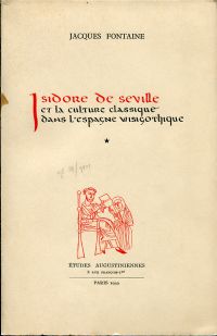 Fontaine, Jacques: Isidore de Seville et la culture classique dans l’espagne wisigothique. Thèse pour le Doctorat ès-Lettres présentée à la Faculté des Lettres de l’Université de Paris. 2 Bände. Paris: Études Augustiniennes 1959. Gr.-8°. XVII, (2), S. 1-450, 2 Taf.; (4), S. 451-1013, Bibliographie, Register, broschiert (unaufgeschnitten; Papierbedingt leicht gebräunt; Einband wenig fleckig; gut erhalten)