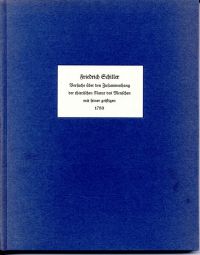 Schiller, Friedrich – Schiller, Johann Christoph Friderich: Versuch über den Zusammenhang der thierischen Natur des Menschen mit seiner geistigen. Nachwort von Johannes Oeschger. – Des Dichters Friedrich Schiller medizinische Arbeit. Faksimile-Nachdruck der Ausgabe Stuttgart, Christoph Friedrich Cotta. Ingelheim am Rhein: C.H. Boehringer Sohn 1959. 8°. 64 S., 1 farbiges Porträt. Pappband (gut erhalten)